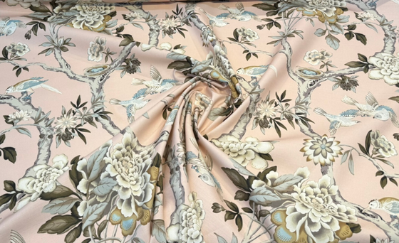 Waverly Mudan Blush Pink Floral Birds Drapery Upholstery Fabric By the Yard