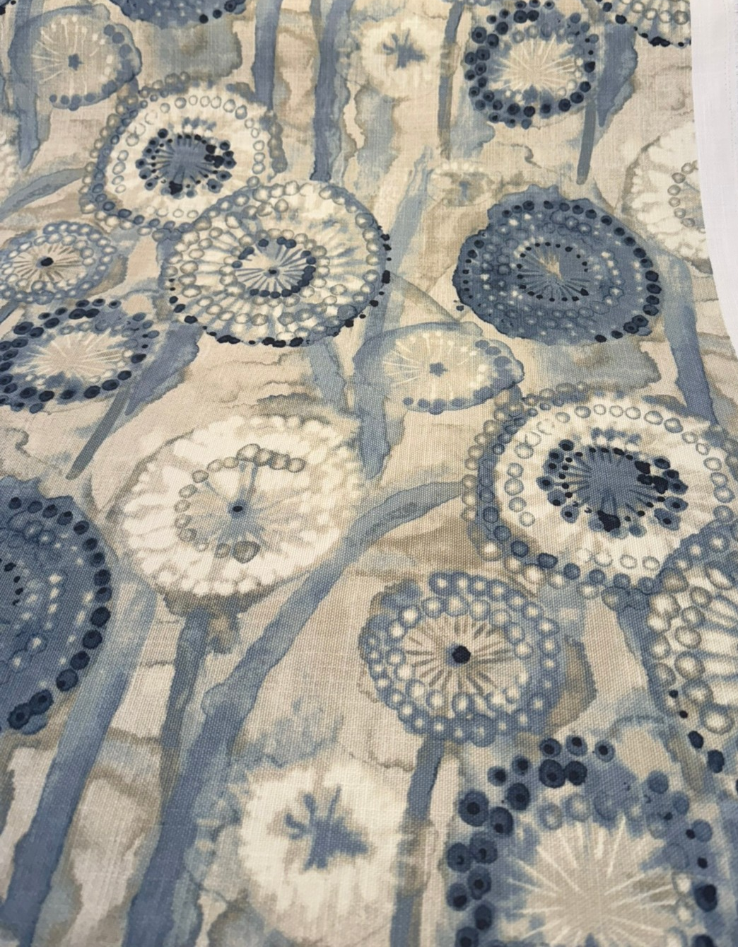 Infuse your home with effortless sophistication using Waverly Majorca Denim by Ellen DeGeneres, a designer fabric that blends contemporary artistry with classic comfort. This 100% cotton fabric features a soft watercolor-inspired abstract pattern in cool denim blue, gray, and ivory tones, evoking the calm of coastal living with a modern twist.