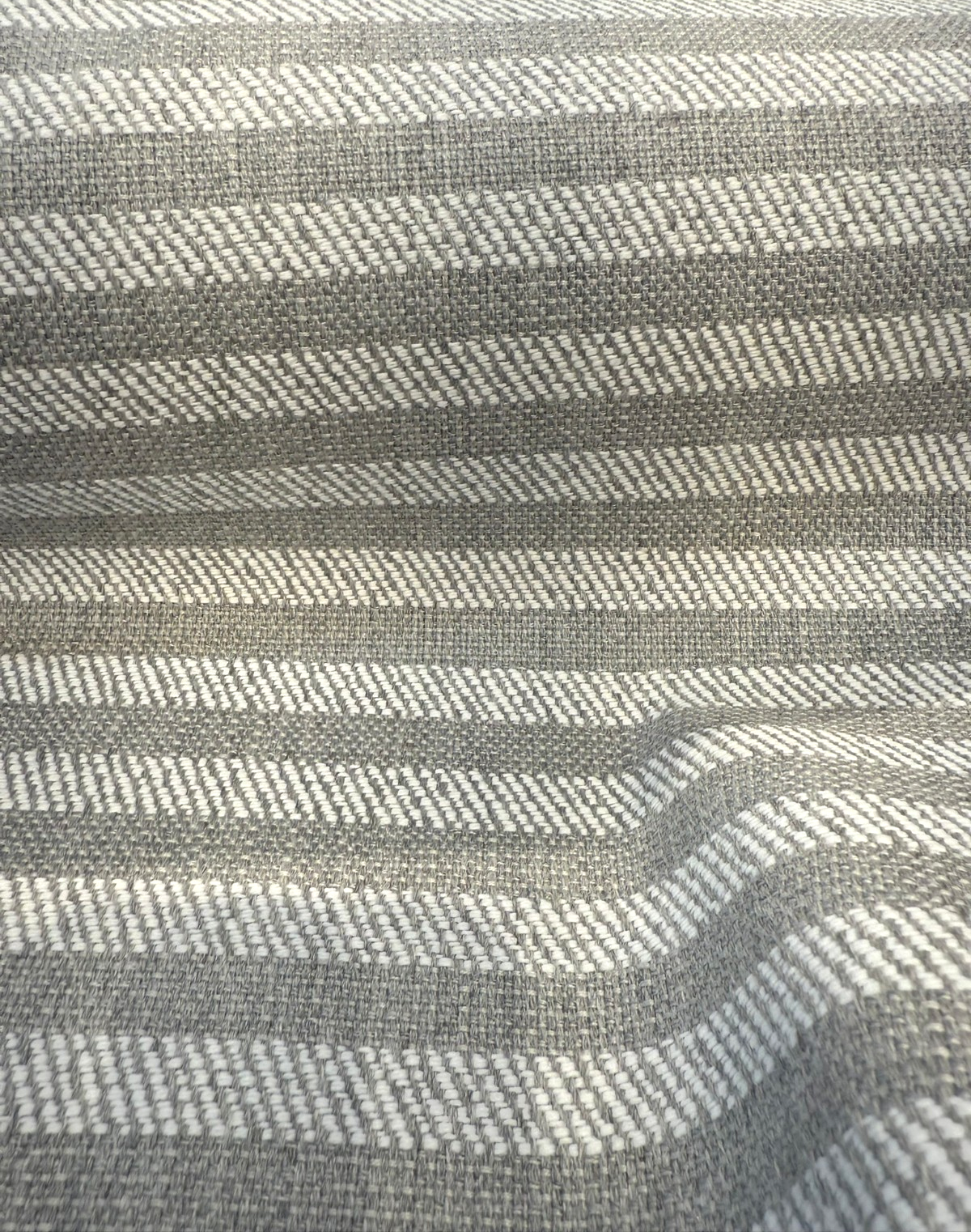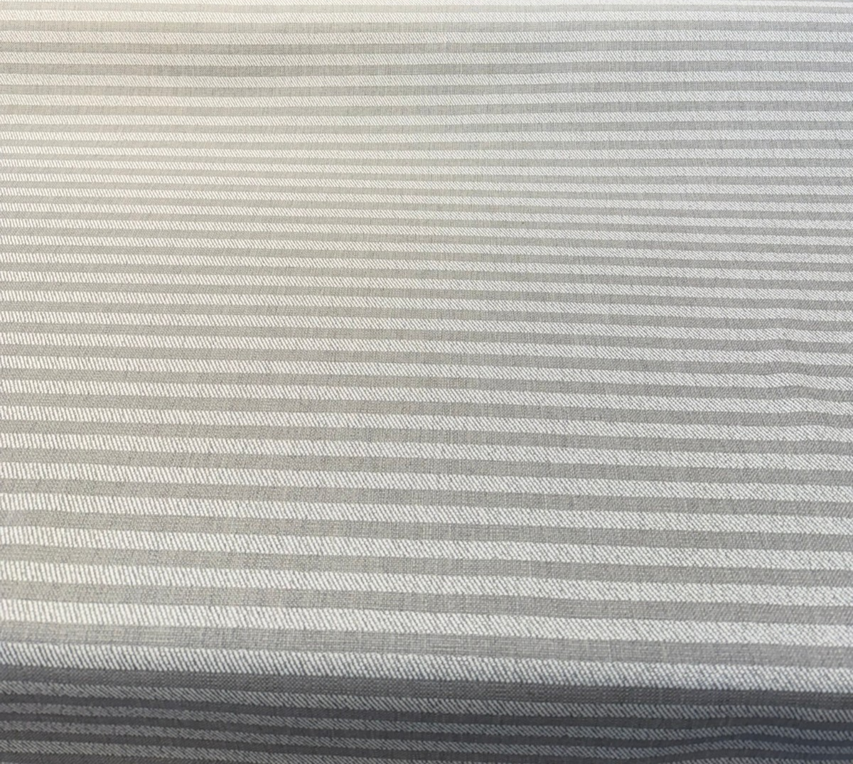 This versatile striped design in soft silver and gray tones offers a classic ticking stripe look with modern performance benefits. Woven from 100% solution-dyed acrylic, it resists fading, stains, and mildew—perfect for upholstery, cushions, pillows, and indoor/outdoor décor. With its subtle stripe repeat and railroaded cutting direction, this fabric is ideal for seamless applications that demand both beauty and strength. Easy to clean with mild soap and water.