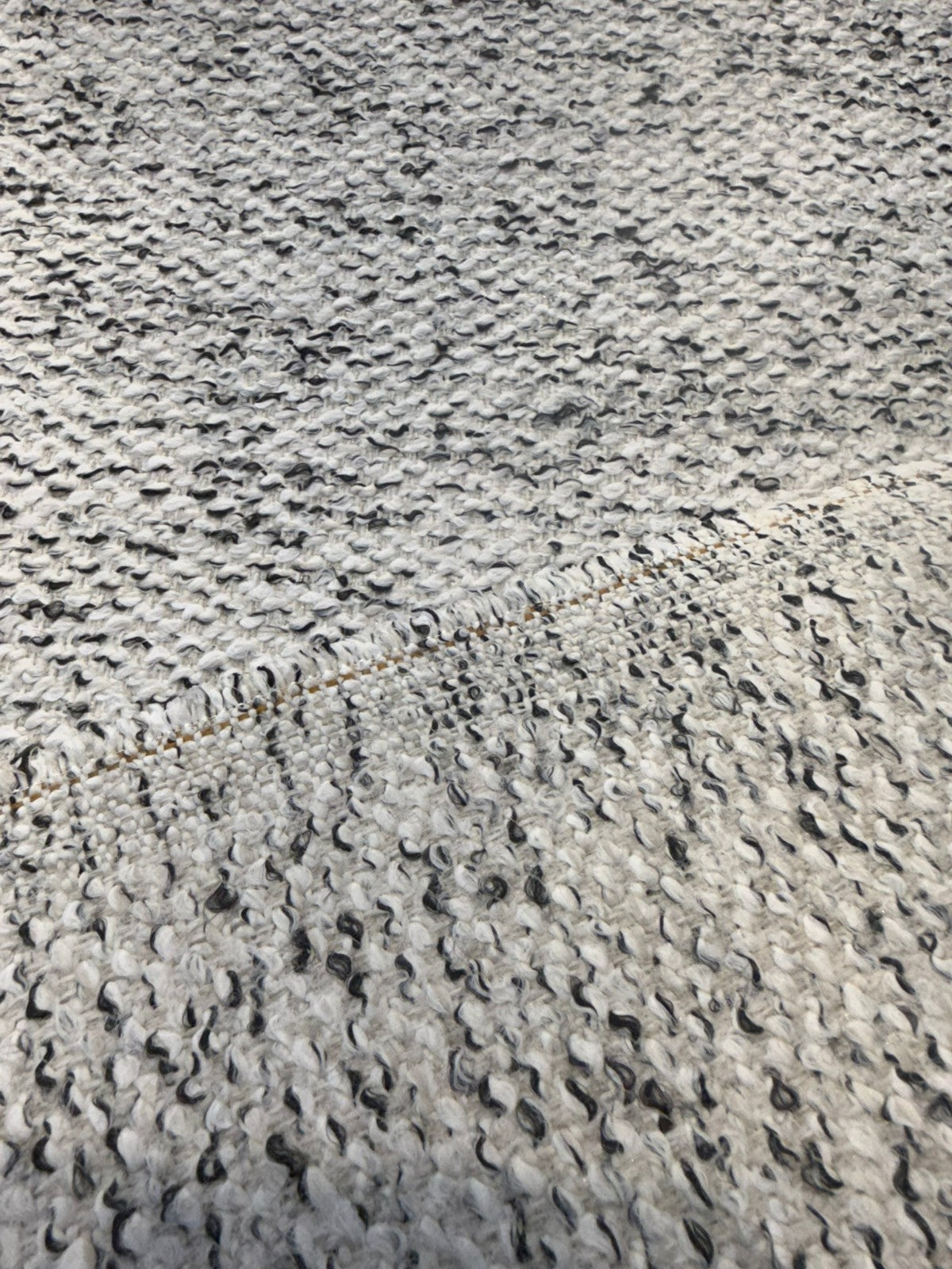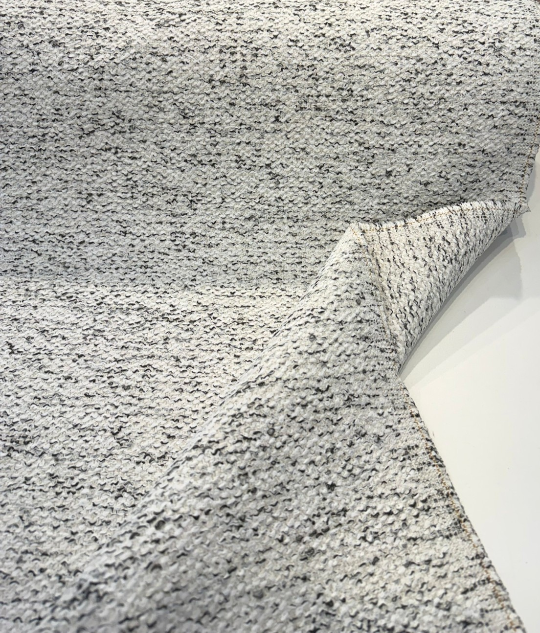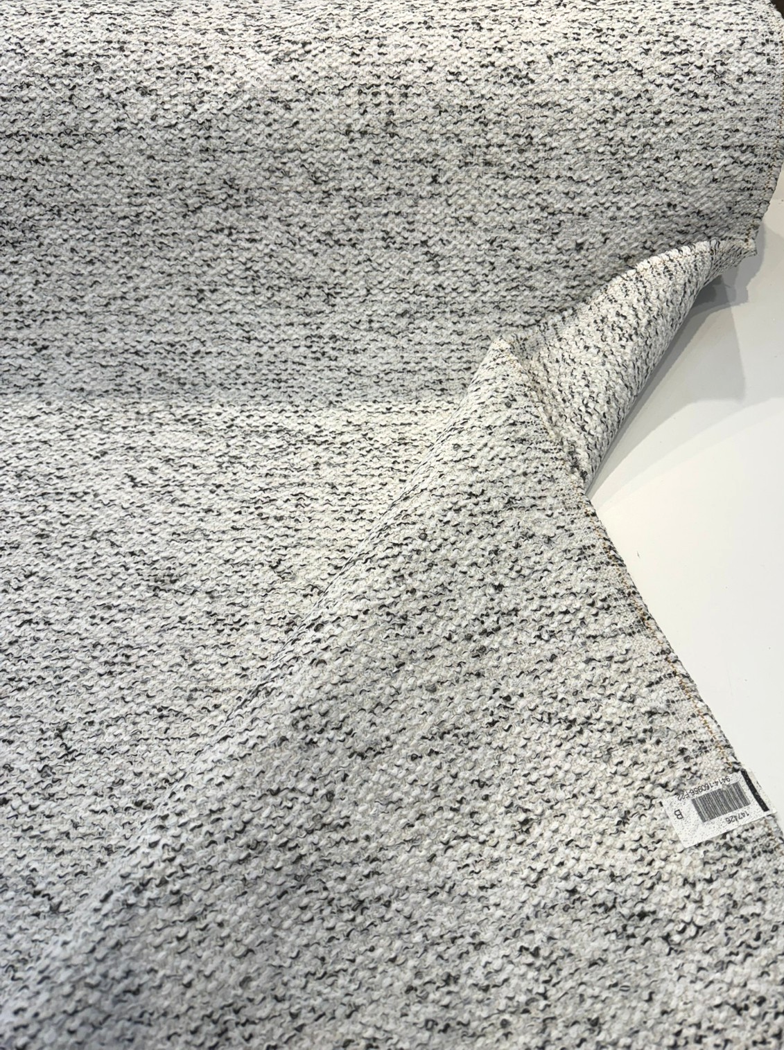 • Dreamy Smoke Revolution Boucle Upholstery Fabric blends modern texture with timeless neutral tones. The unique boucle weave combines soft white fibers with smoky black accents, creating a dimensional, high-end look that works beautifully in both contemporary and classic interiors.