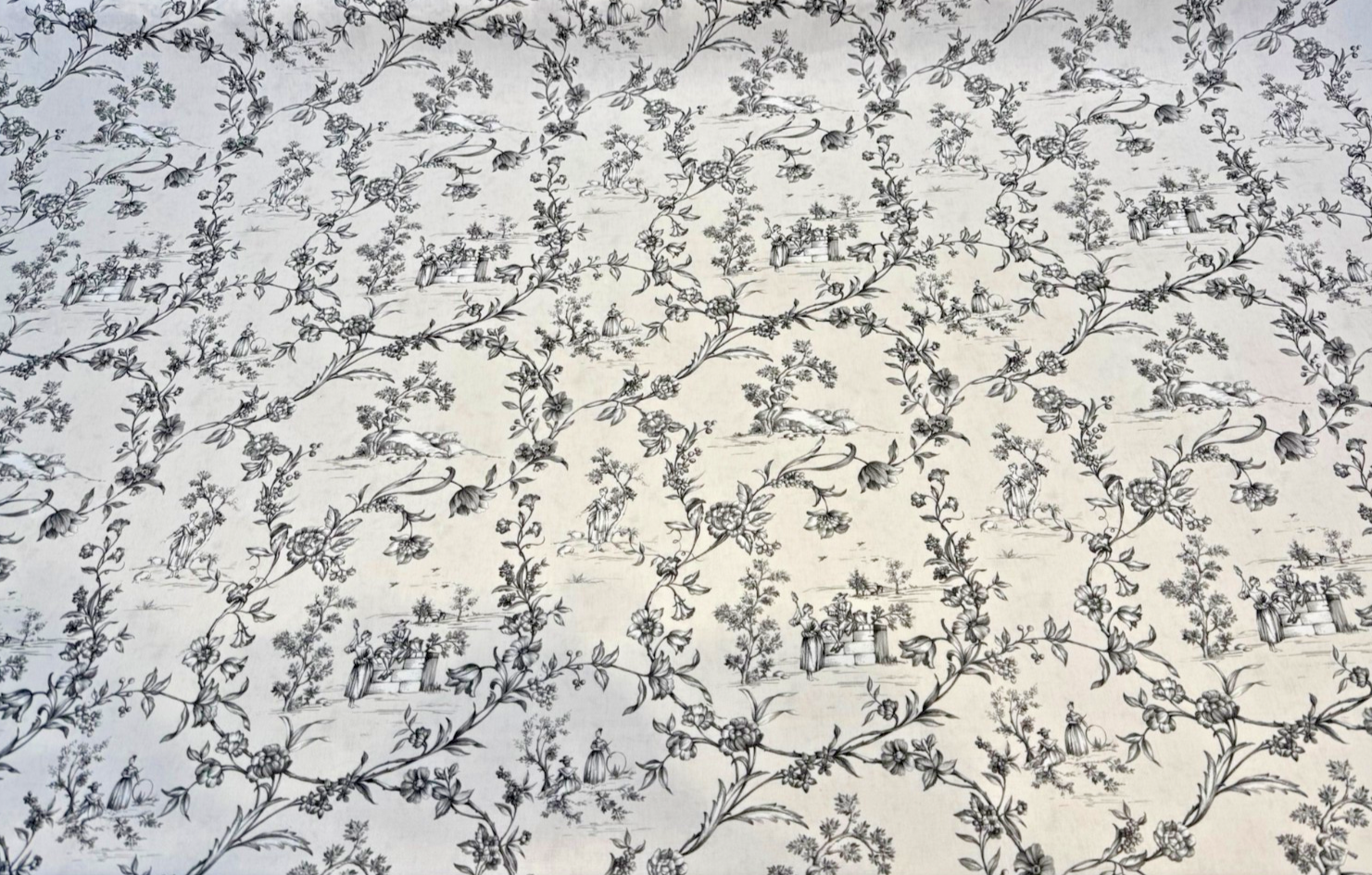 Black White Toile Floral Scenic Cotton Drapery Upholstery Fabric By The Yard