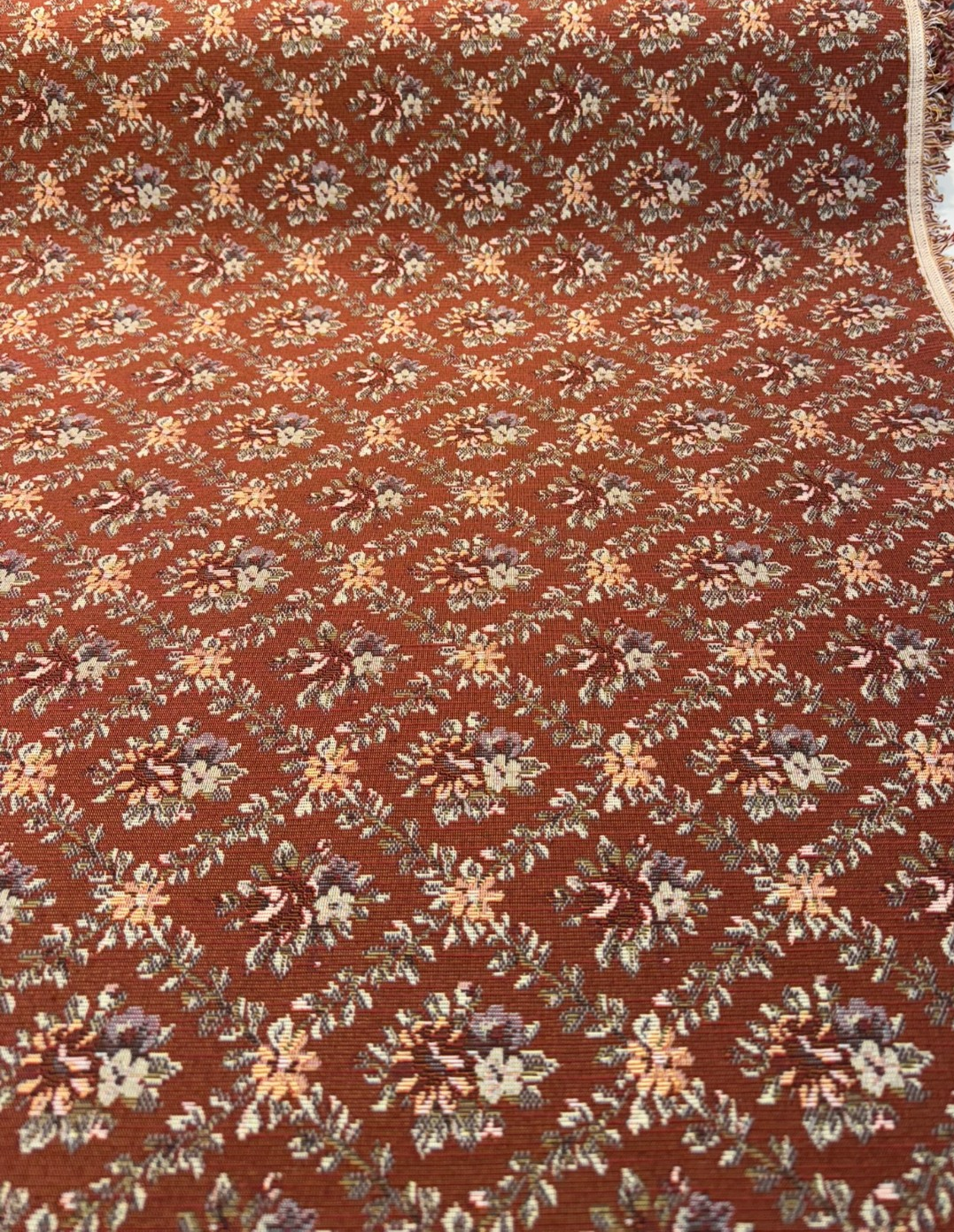 Bring vintage elegance and vibrant charm to your décor with Gladys Salsa Red Flame Floral Bouquet Tapestry Upholstery Fabric. Woven with intricate floral medallions over a rich red background, this classic tapestry design adds timeless character to any space. The detailed pattern of warm earth tones and subtle pastels creates a luxurious, heirloom-inspired look.