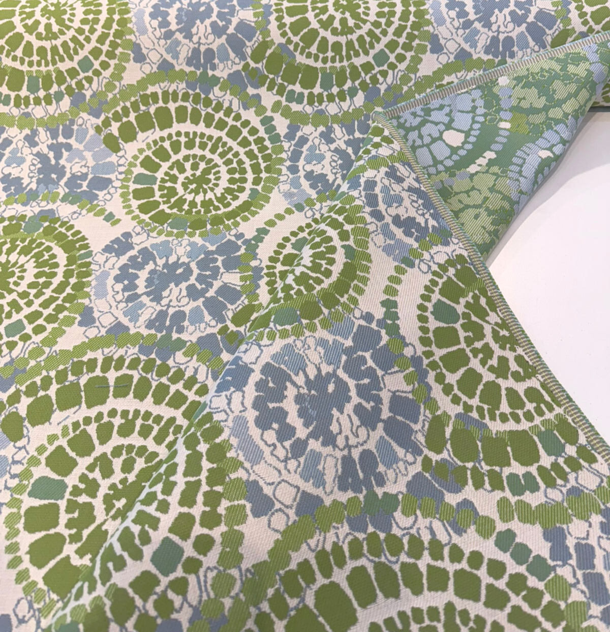 Add a splash of coastal energy to your outdoor or indoor spaces with Sunbrella Conch Seaweed, a vibrant upholstery fabric featuring a bold, tie-dye-inspired shell motif in lime green and ocean blue. With its playful yet organic design, this fabric brings both movement and modern beach-house charm to any setting.