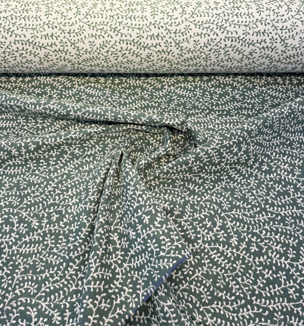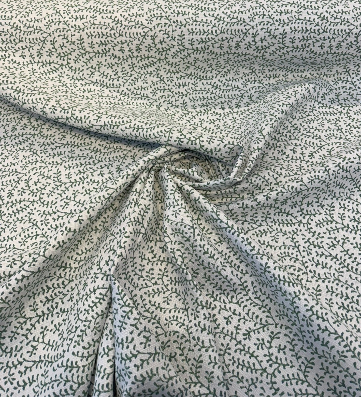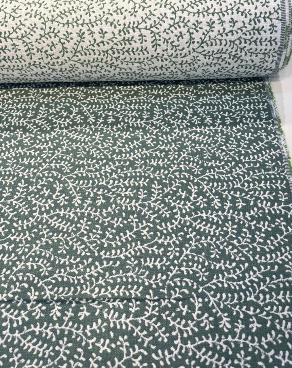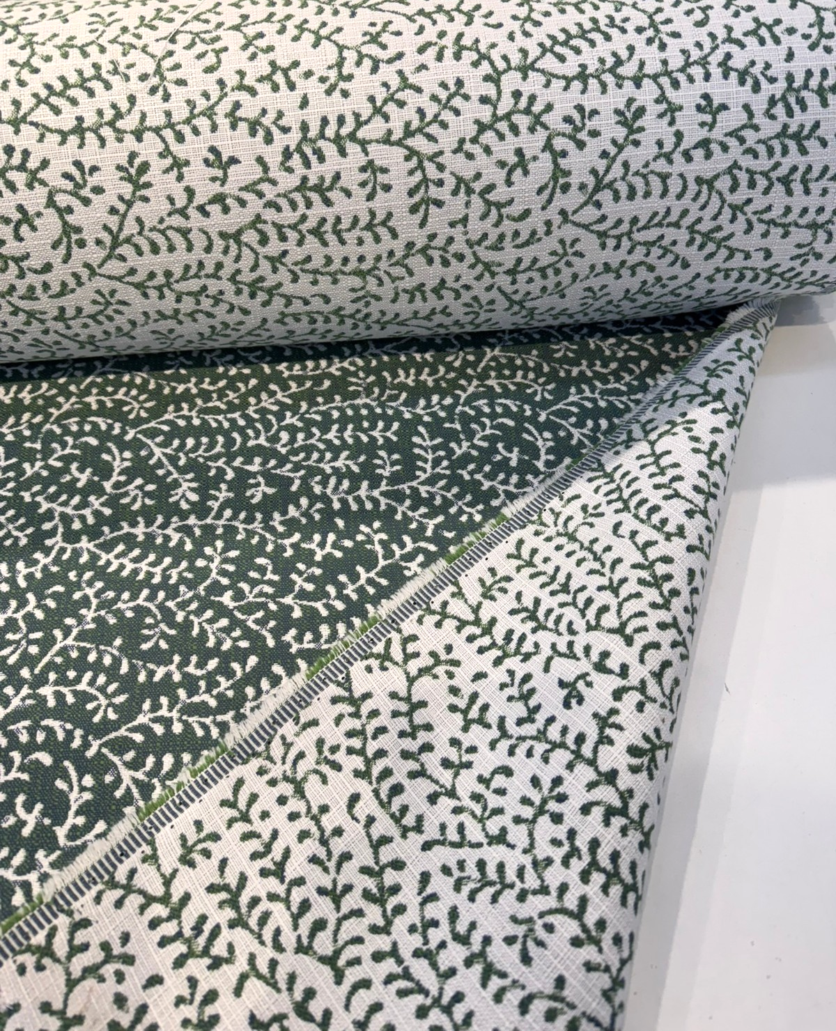 Bring a fresh botanical look to your outdoor or indoor spaces with Sunbrella Eberly Jewel 146267-0001, a premium performance upholstery fabric featuring a crisp vine pattern in green on a soft neutral ground. This design is reversible, giving you two beautiful looks in one fabric—perfect for cushions, pillows, chairs, and custom upholstery projects.