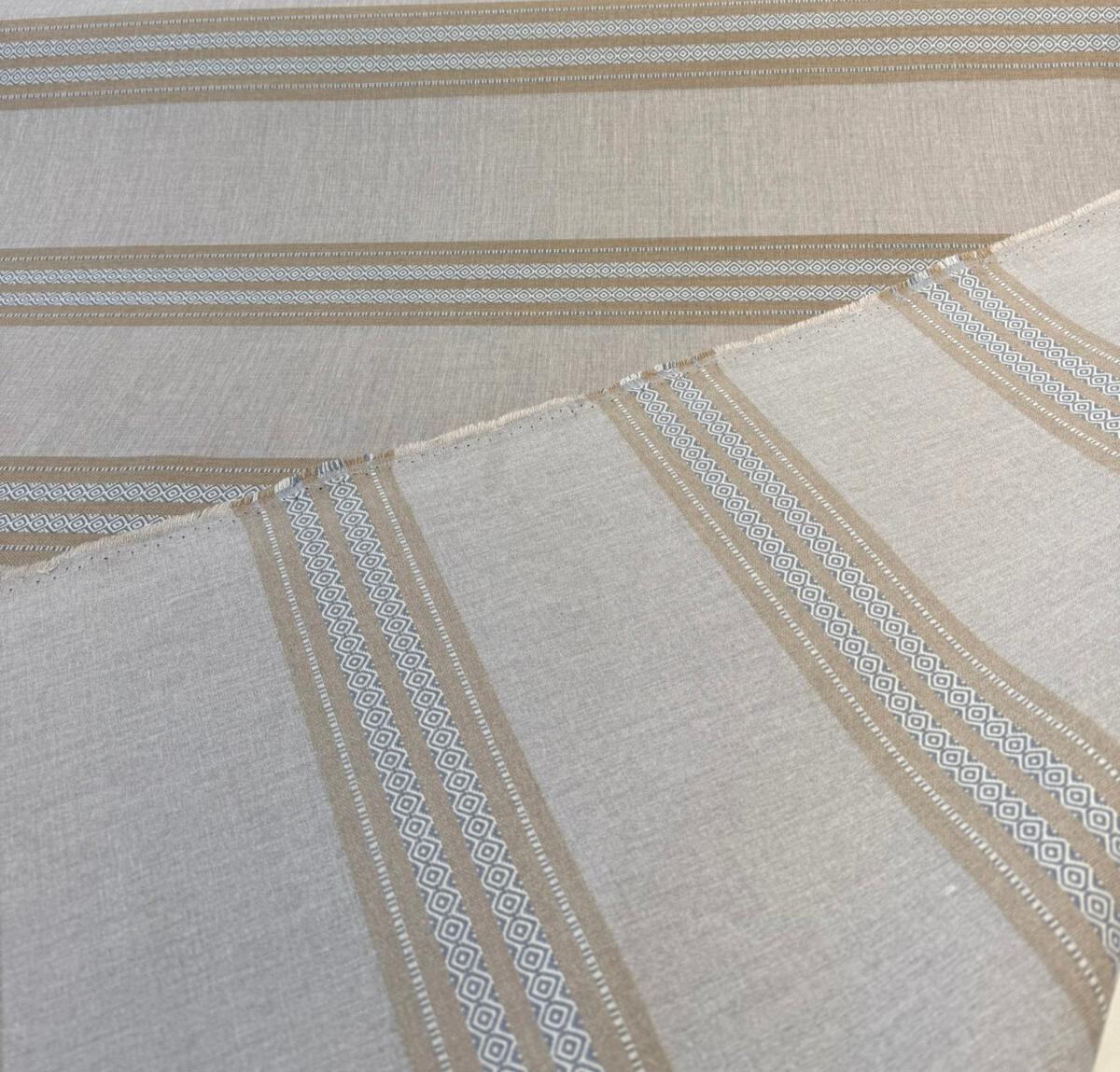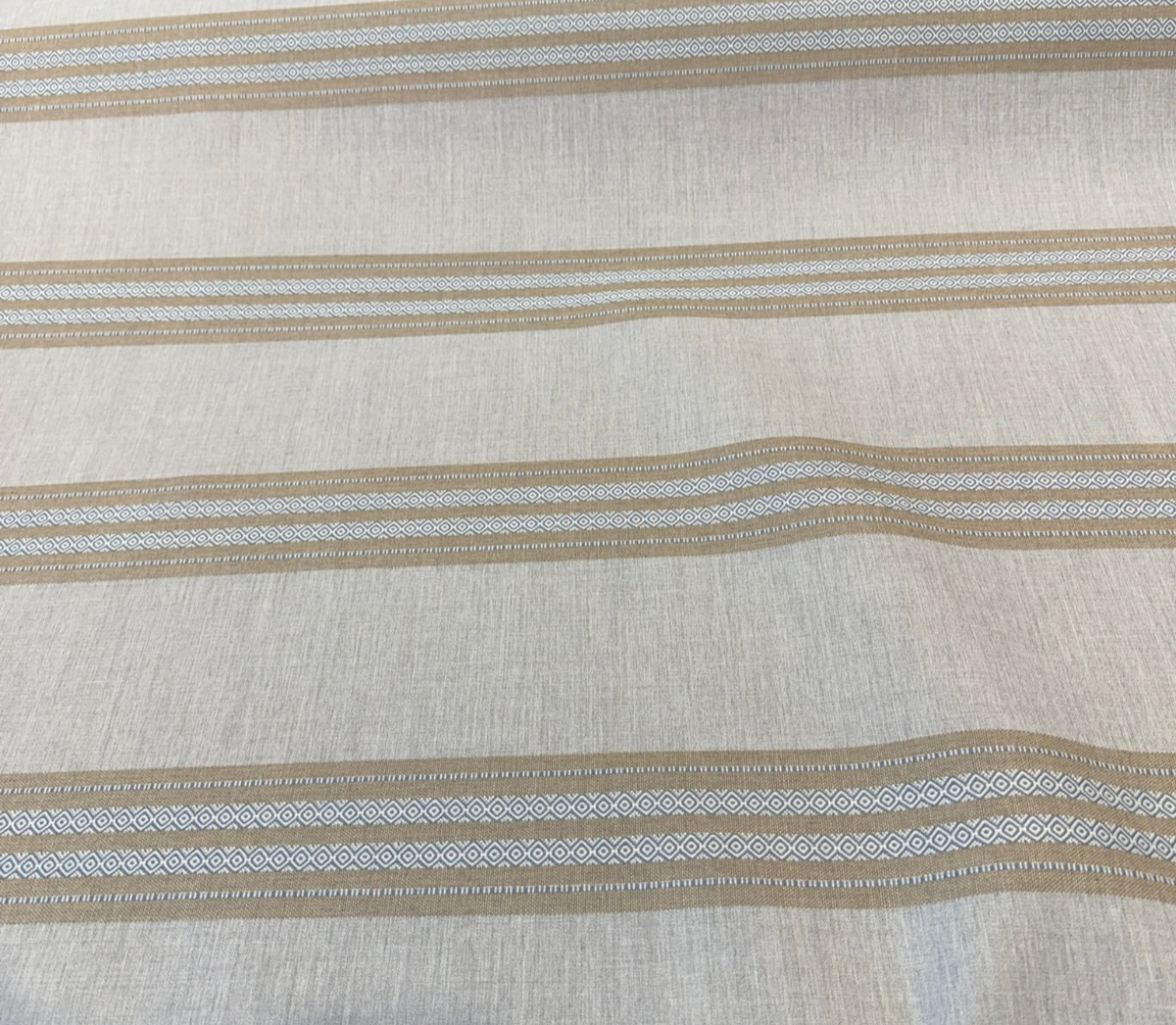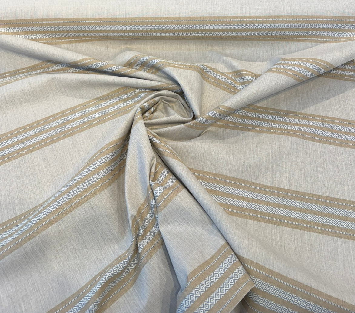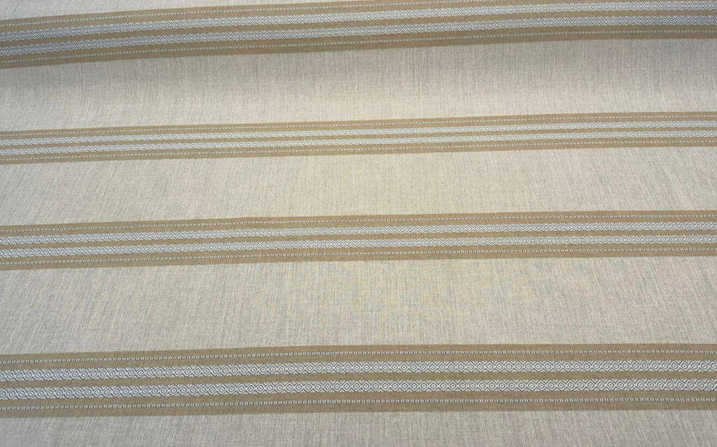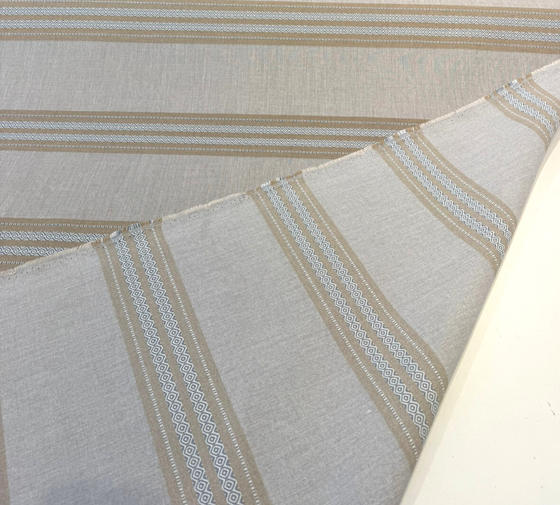 Introduce timeless refinement to your space with Sunbrella Ethos Dune, a soft neutral stripe fabric crafted for both style and performance. This upholstery fabric features woven bands of beige and cream with delicate geometric detailing. Its earthy tones and subtle texture make it a versatile choice for modern, coastal, or transitional designs.
