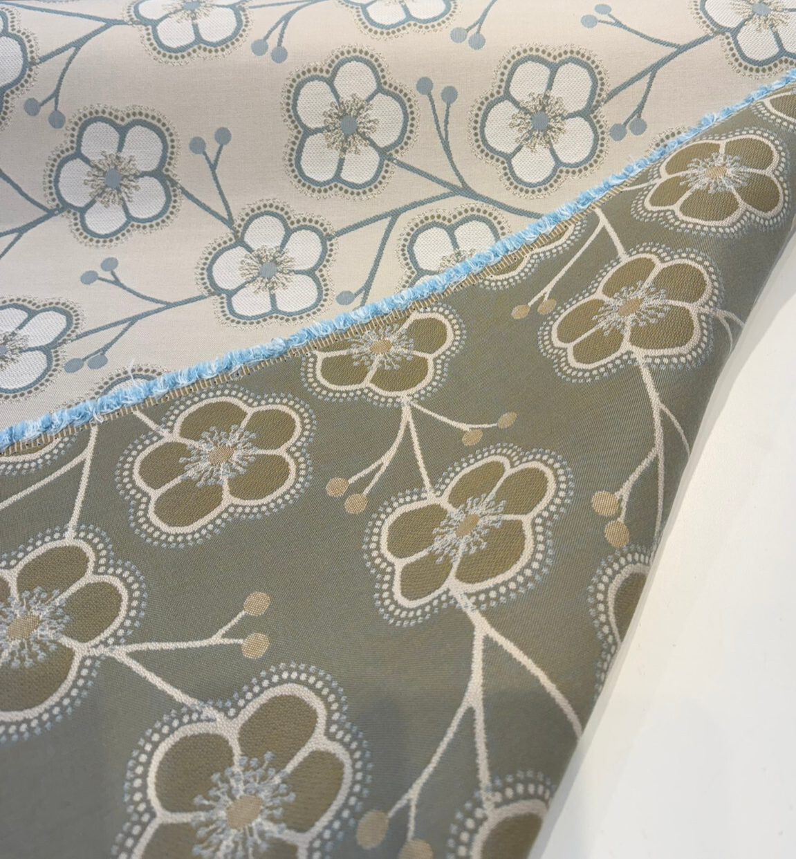 Ideal for both residential and commercial use, Lucia Mist is perfect for cushions, pillows, drapery, and upholstery. Its refined pattern repeat—13.7" vertical x 28" horizontal—adds visual interest without overwhelming the design.