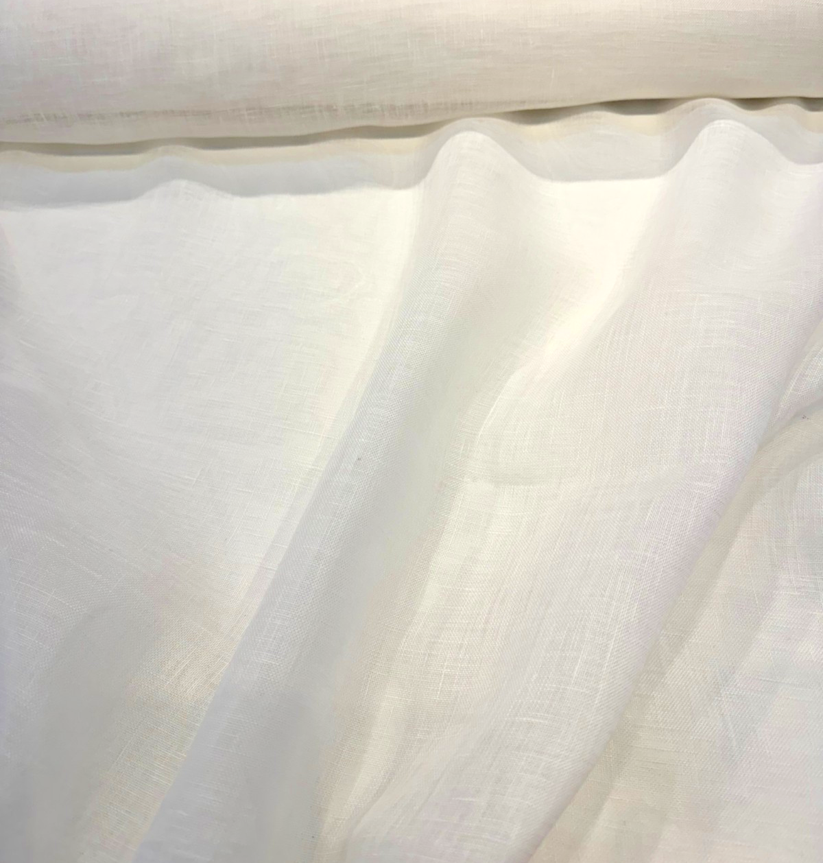 A premium 100% Belgian Linen sheer, woven in Belgium with a soft, airy hand and beautiful natural drape. This lightweight snow-white sheer is ideal for elegant window treatments, soft flowing curtains, canopies, and decorative accents requiring breathability and a refined organic look.