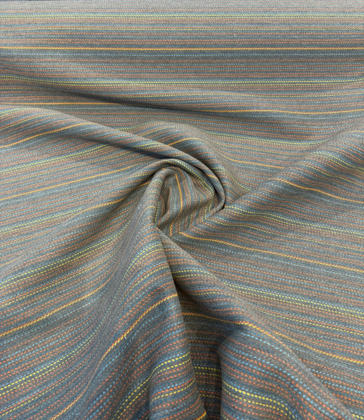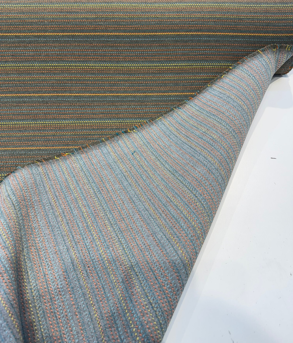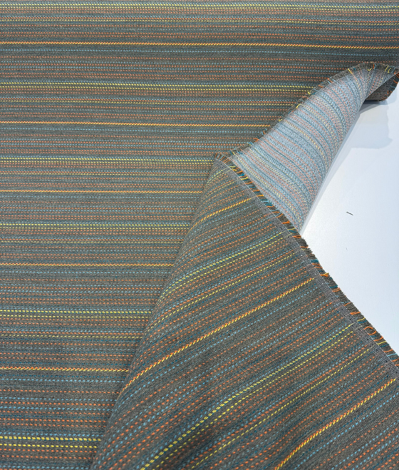 Sunbrella Achiever Aloe Stripe brings earthy sophistication to high-performance outdoor design. Woven with a blend of cool greys, soft teal, aloe green, orange, and goldenrod in a tightly spaced vertical stripe, this fabric combines modern aesthetics with legendary Sunbrella durability. Ideal for cushions, patio upholstery, outdoor drapery, or high-traffic indoor use, it resists UV rays, mildew, water, and stains while maintaining its rich tones and refined texture.